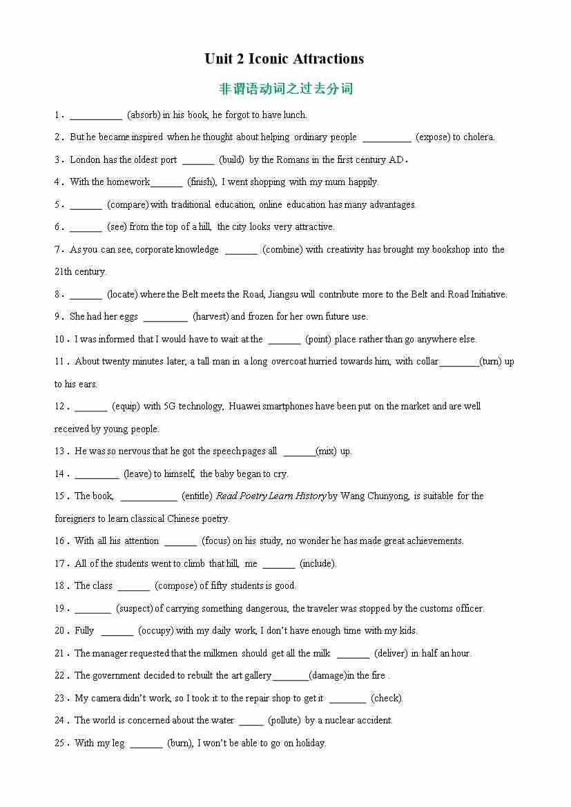 Unit 2 Iconic Attractions 语法Grammar 非谓语动词之过去分词-(人教版2019)