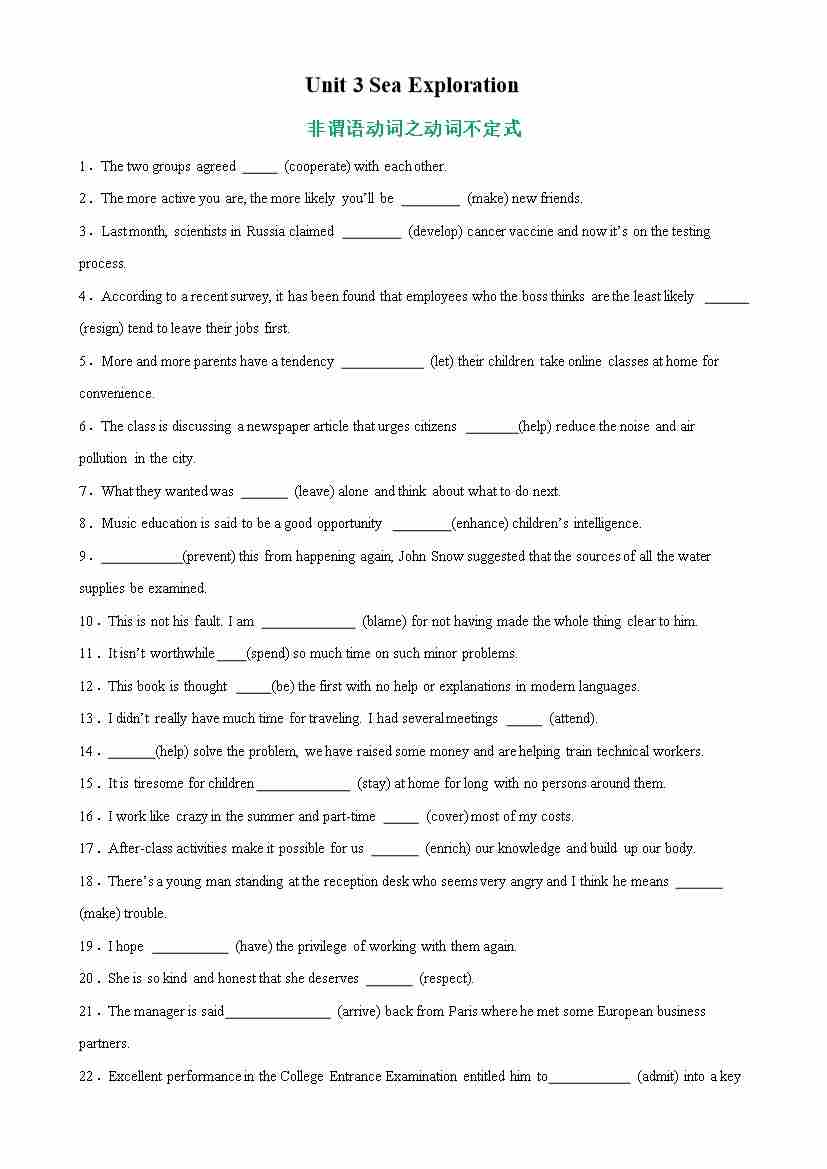Unit 3 Sea Exploration 语法Grammar 非谓语动词之动词不定式-(人教版2019)