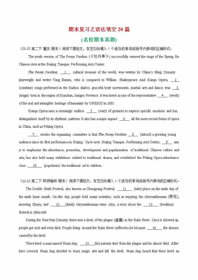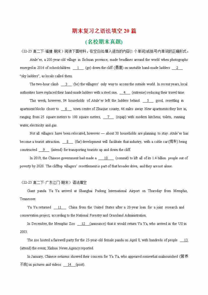 期末复习之语法填空20篇(各地名校期末真题)-(人教版2019)