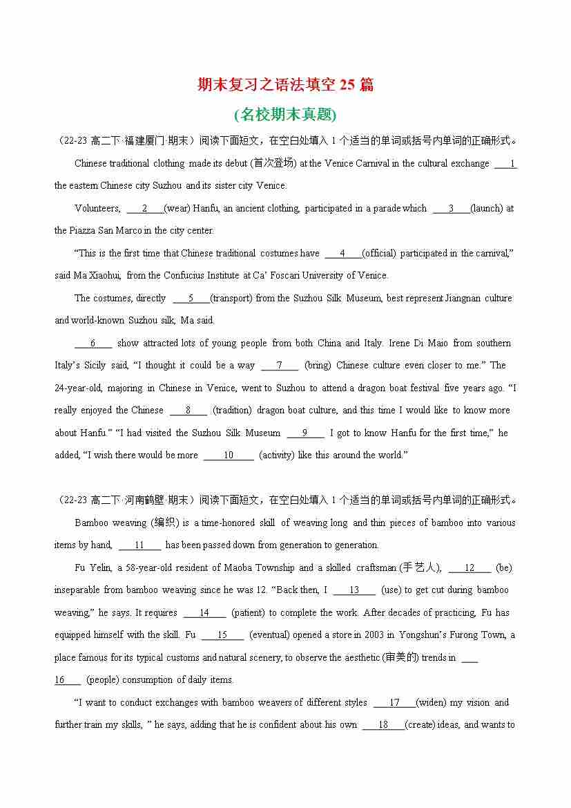 期末复习之语法填空25篇(各地名校期末真题)-(人教版2019)