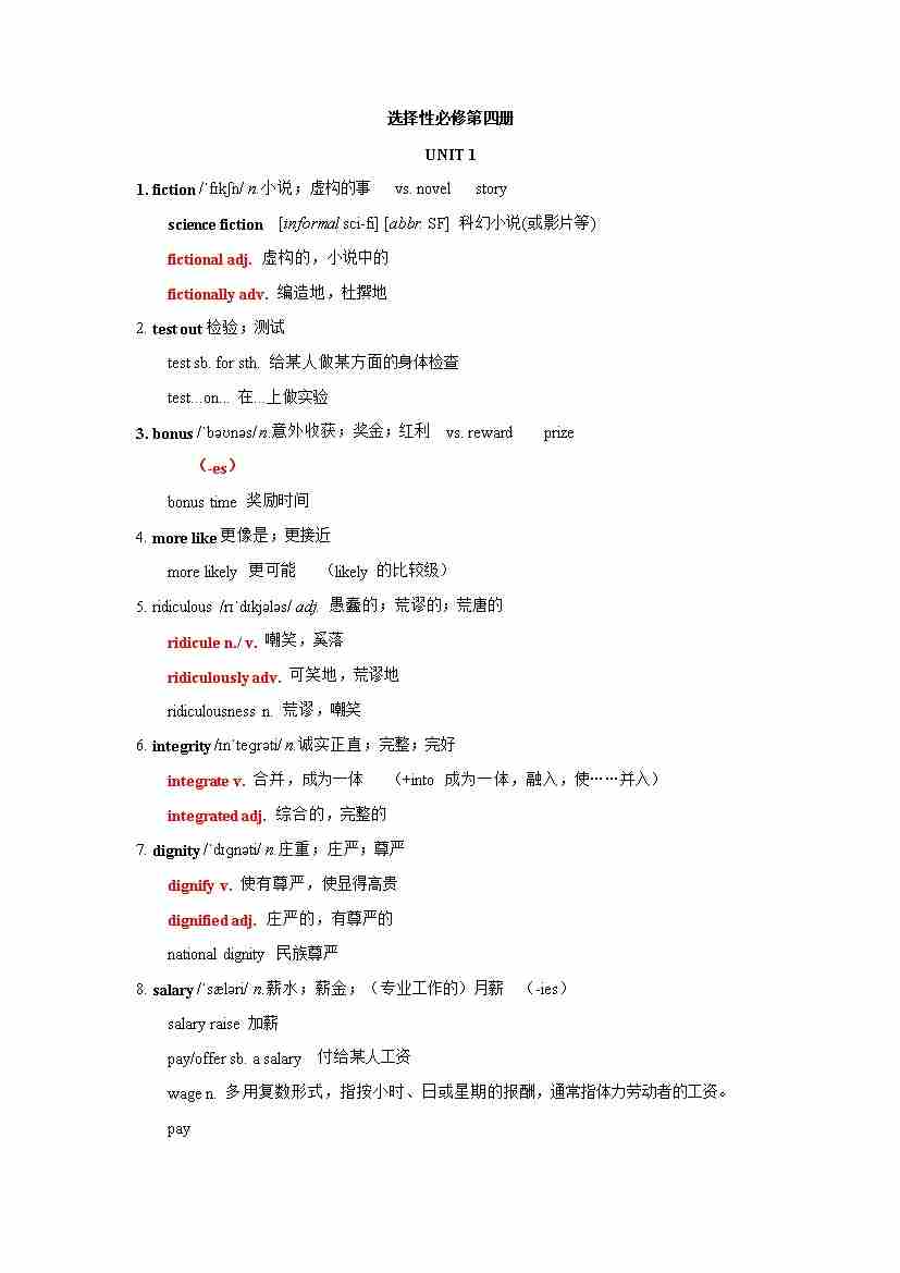 Unit 1 词性拓展讲义-高中英语人教版()选择性必修第四册