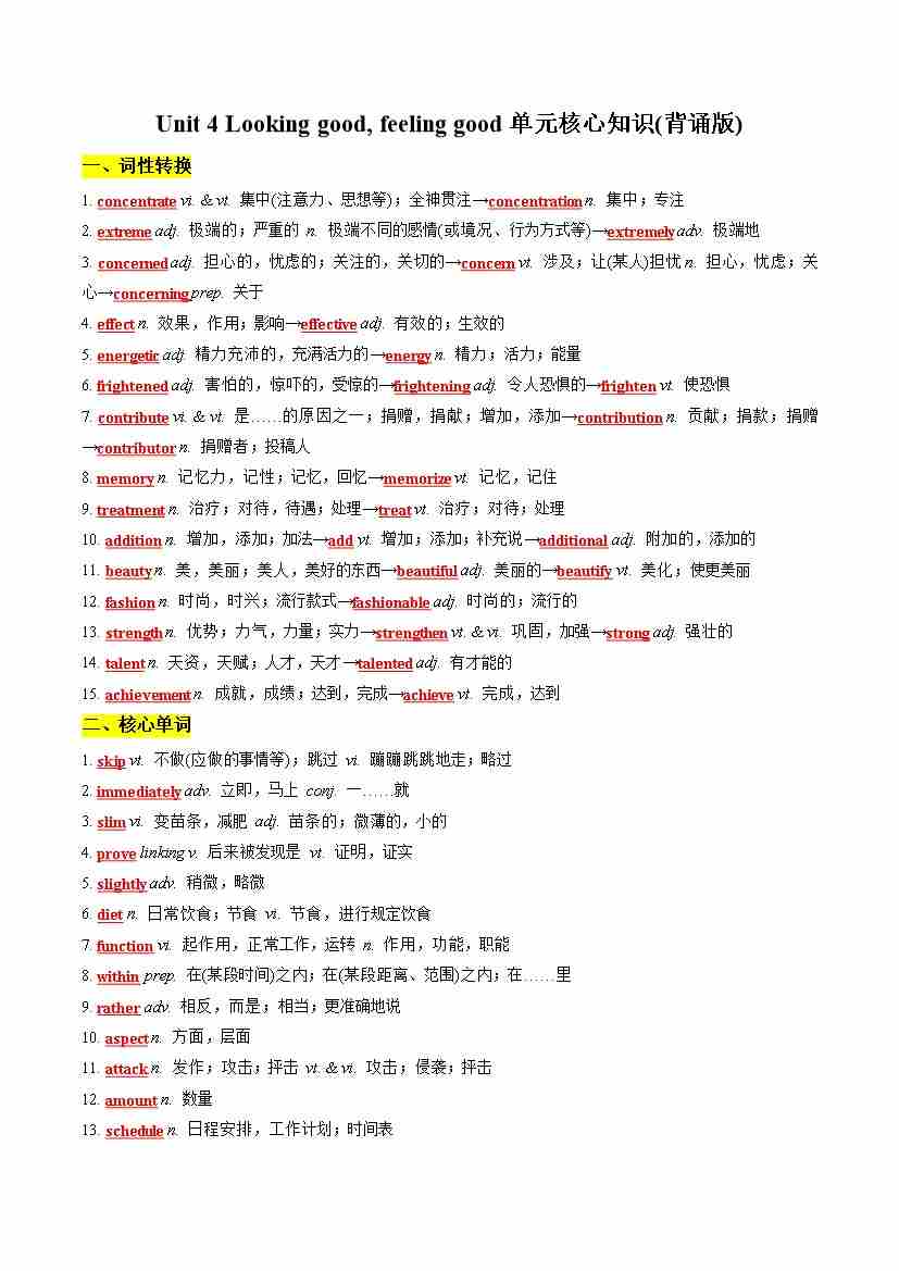 Unit 4 Looking good, feeling good(单元核心知识)(背诵版)