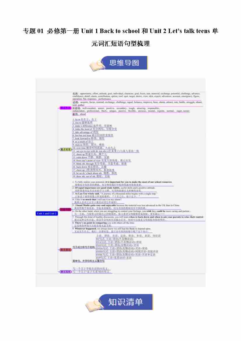 专题01 必修第一册Units 1~2 重点词汇句型语法&写作通用(期末复习知识清单)(背诵版)