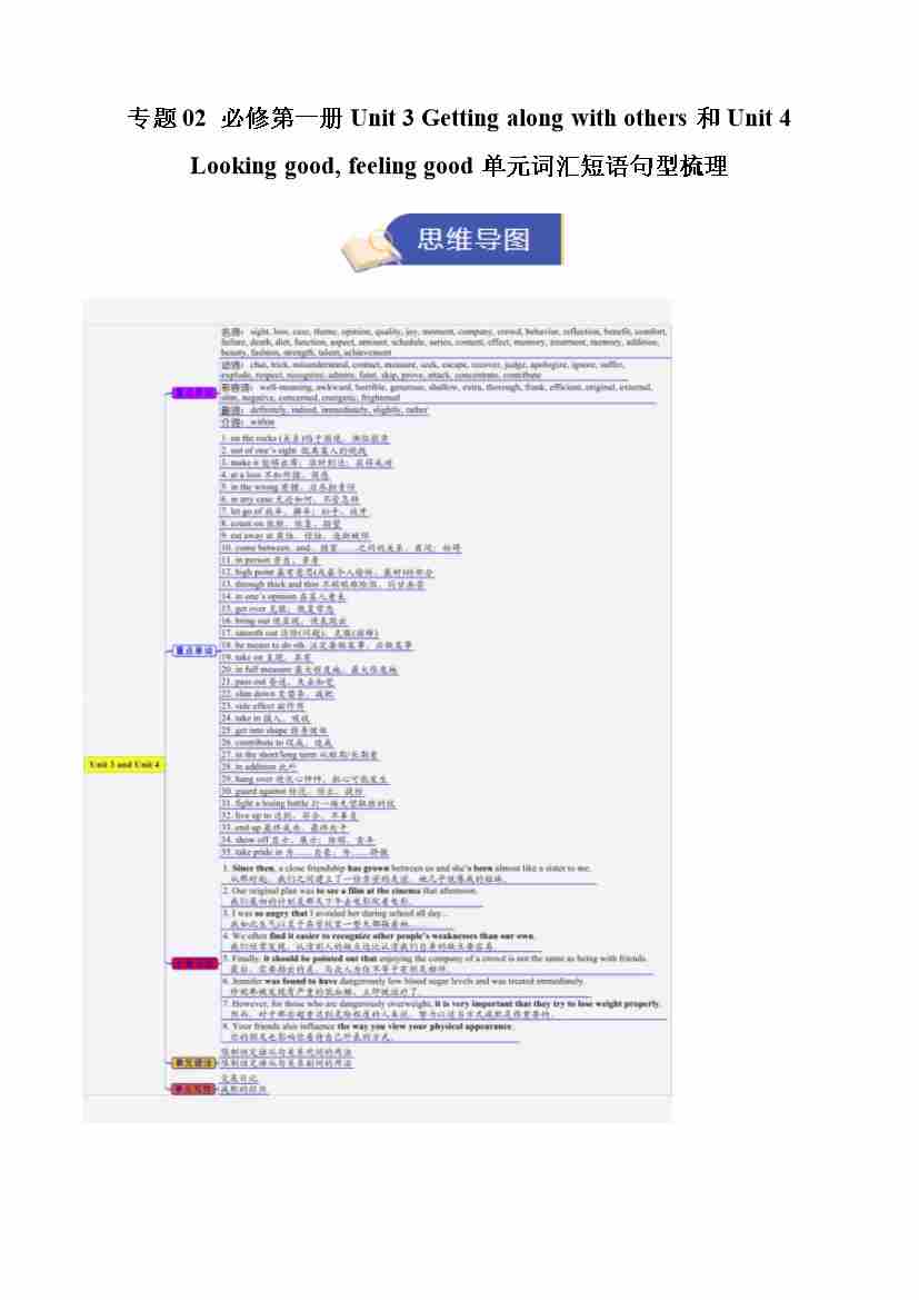 专题02 必修第一册Units 3~4 重点词汇句型语法&写作通用(期末复习知识清单)(背诵版)