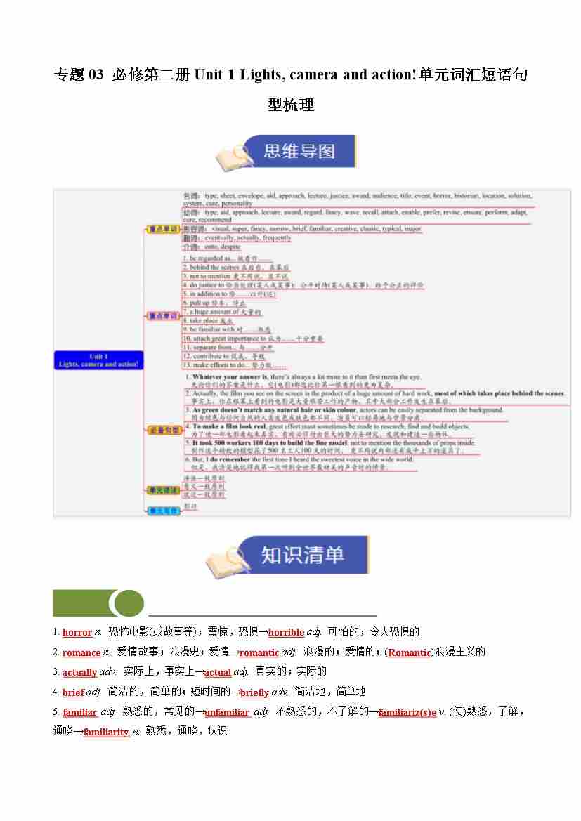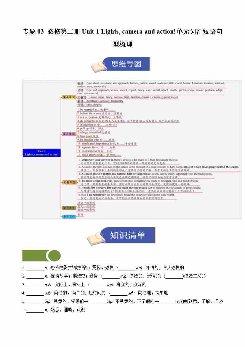 专题03 必修第二册Unit 1 单元词汇短语句型梳理(期末复习知识清单)(背诵版)