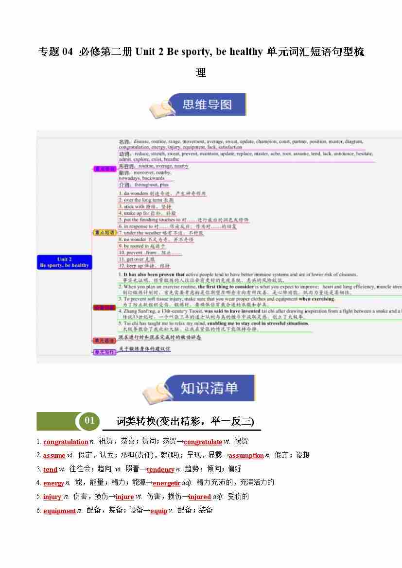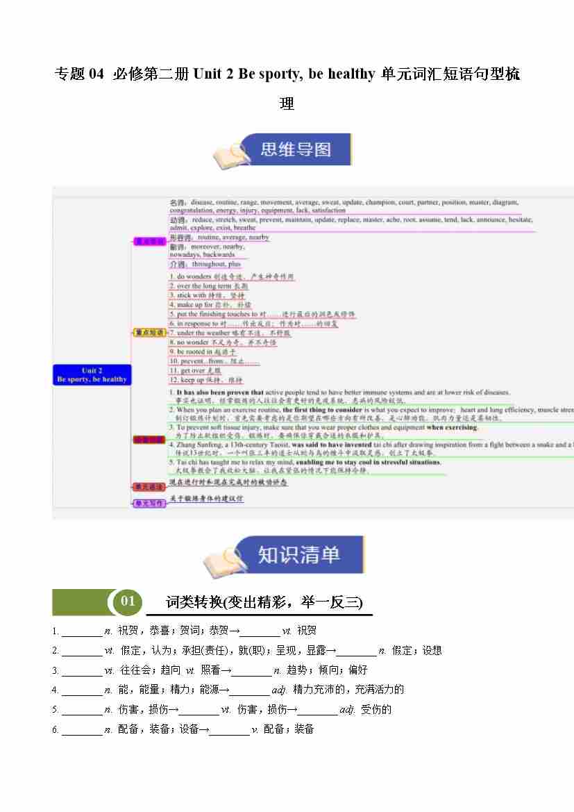 专题04 必修第二册Unit 2 单元词汇短语句型梳理(期末复习知识清单)(背诵版)