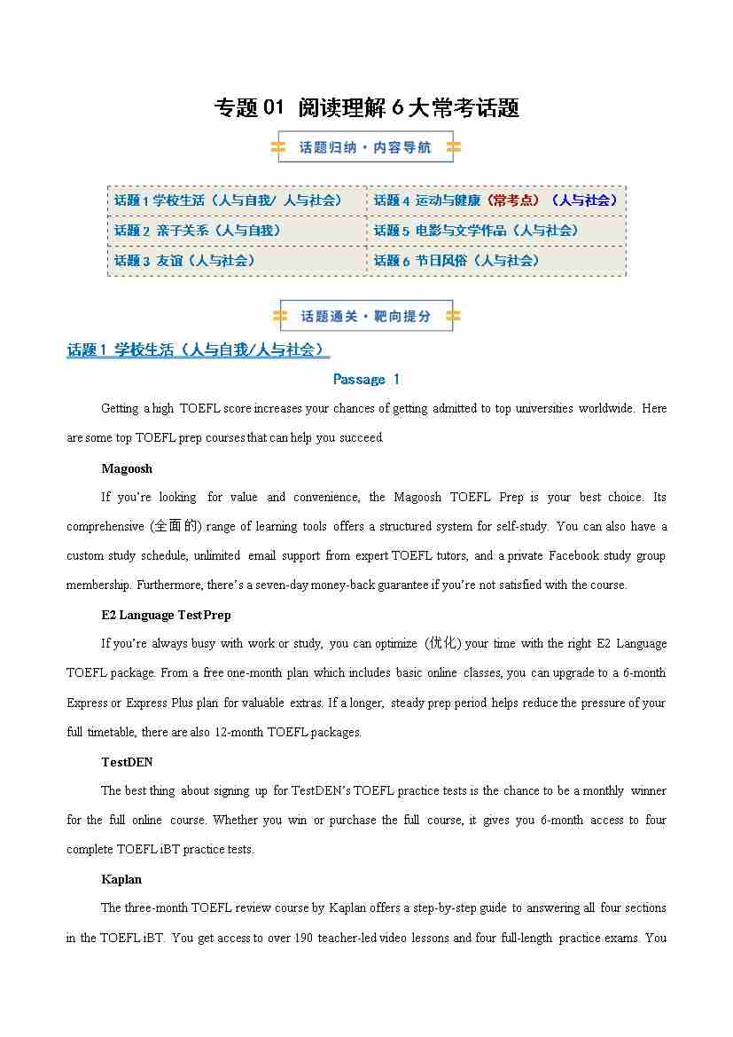 考前押题01 阅读理解6大常考话题(期末复习专项训练)(解析版).