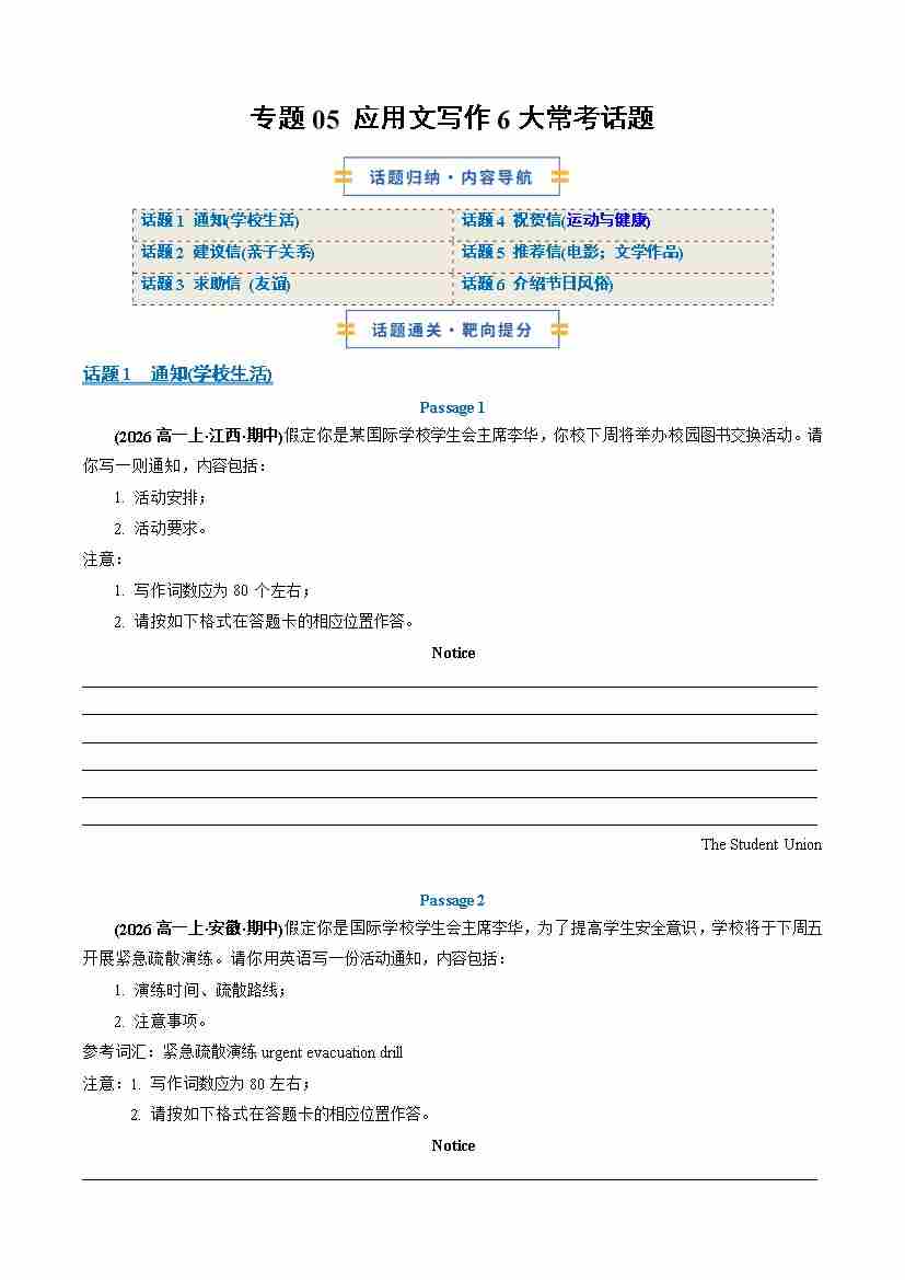 考前押题05 应用文写作6大常考话题(期末复习专项训练)原卷版