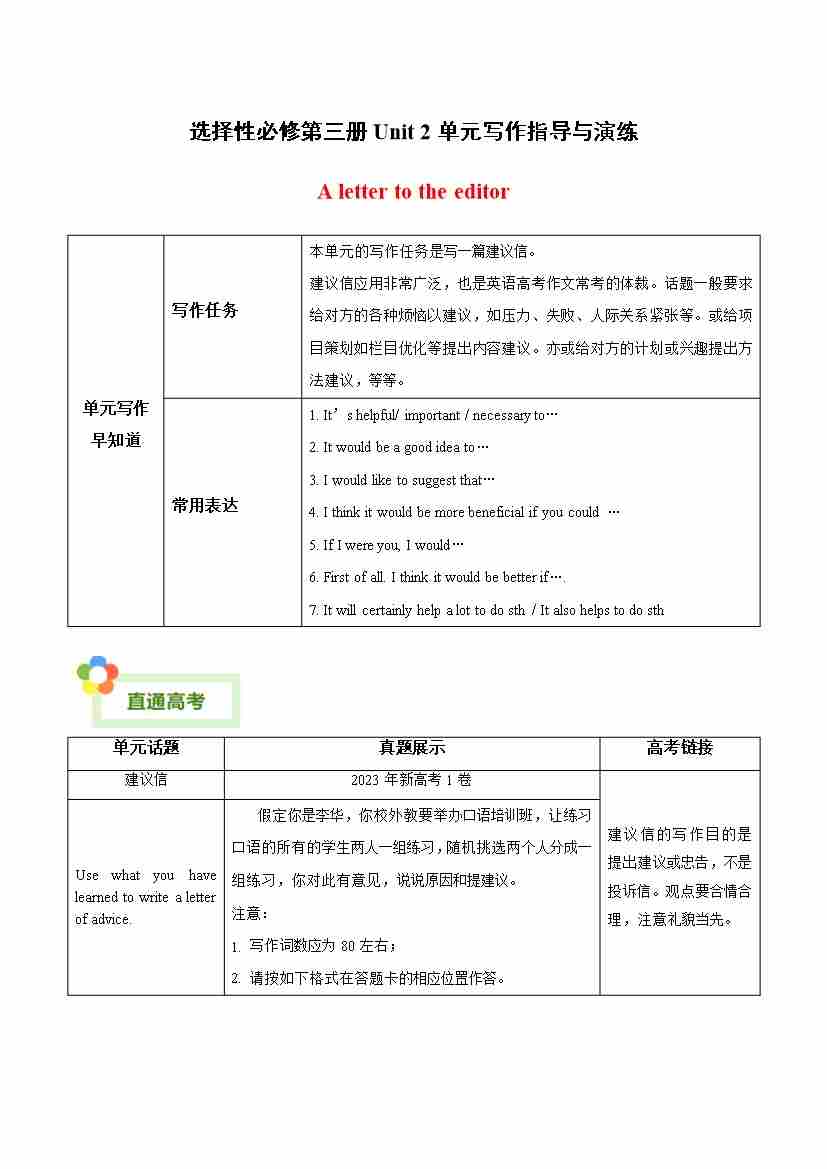 Unit 2 Healthy Lifestyle -高二英语单元写作深度指导(人教版2019选择性必修第三册)