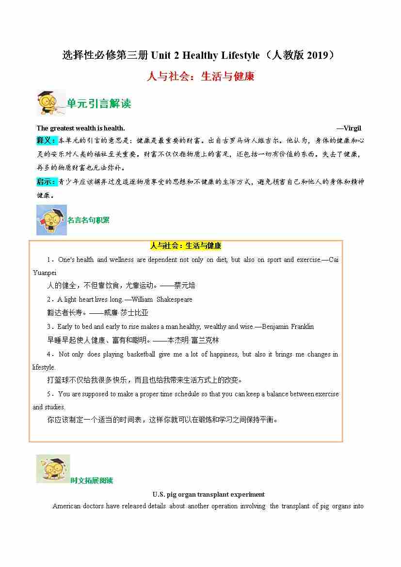 Unit 2 Healthy Lifestyle (人与社会:生活与健康)(同步拓展阅读)(教师版)(人教版2019选择性必修三)