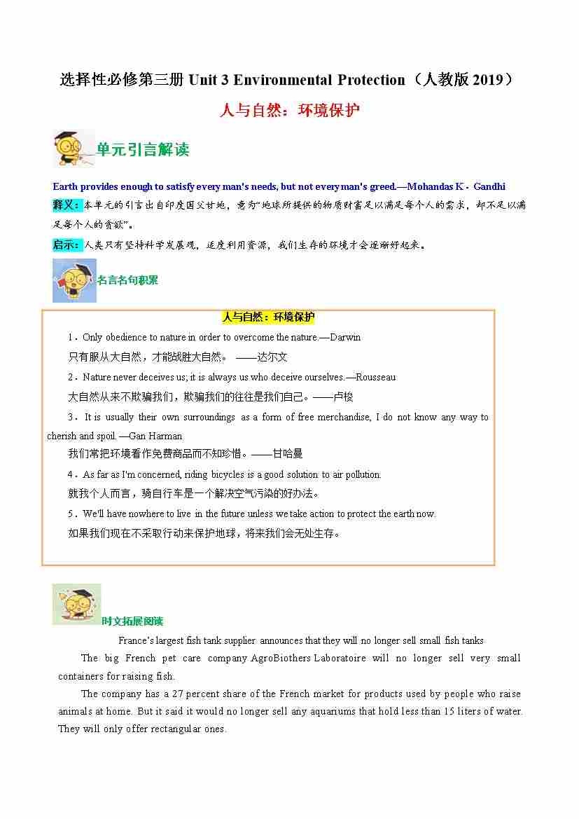 Unit 3 Environmental Protection (人与自然:环境保护)(同步拓展阅读)(教师版)(人教版2019选择性必修三)