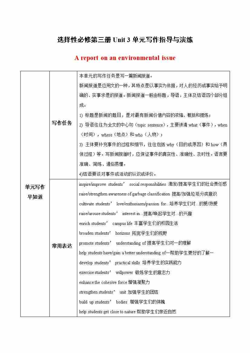 Unit 3 Environmental Protection -高二英语单元写作深度指导(人教版2019选择性必修第三册)