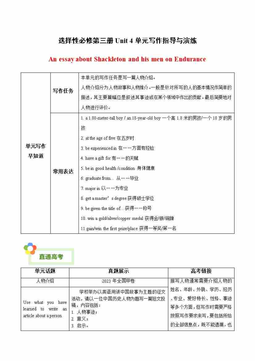 Unit 4 Adversity and Courage -高二英语单元写作深度指导(人教版2019选择性必修第三册)