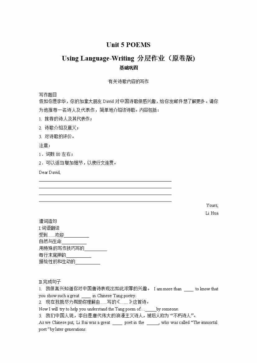 Unit 5 POEMS Using Language2 读写课分层作业(原卷版)