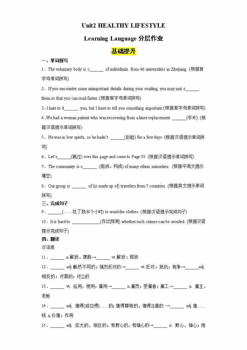 Unit2 HEALTHY LIFESTYLE Leading About Language(分层作业)(解析版)