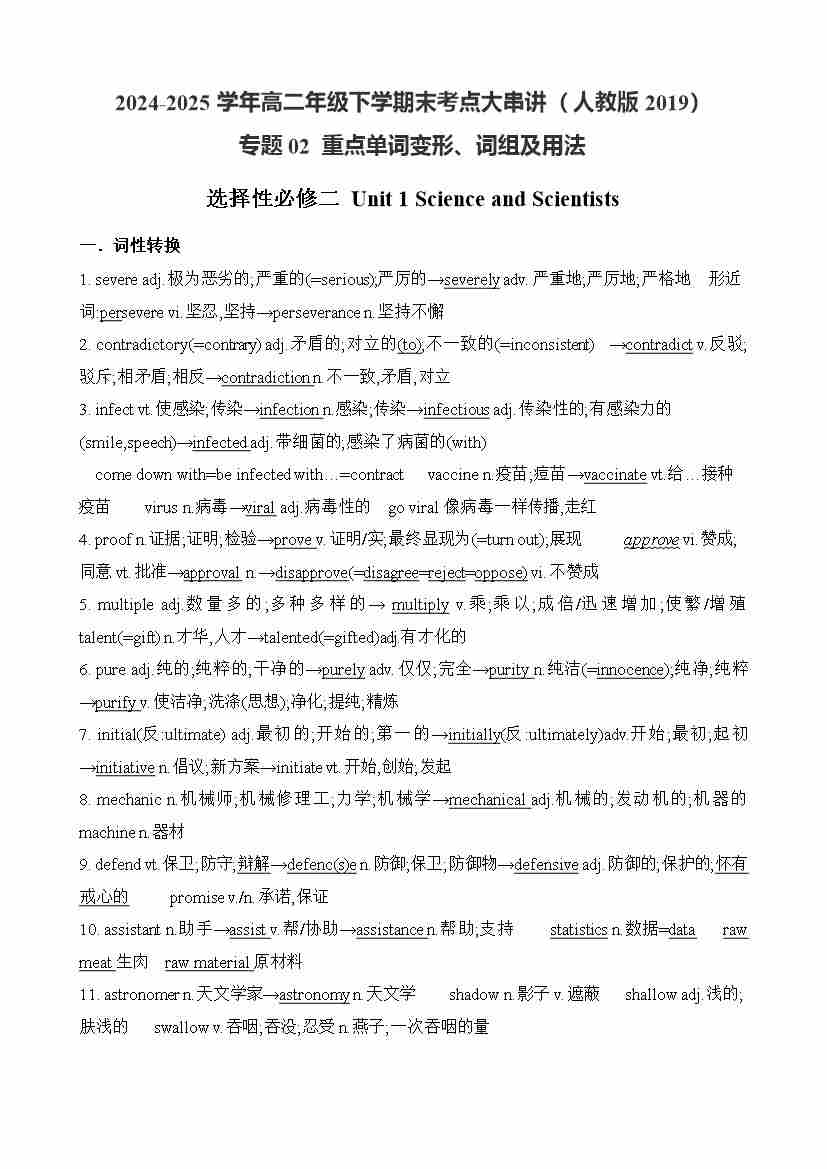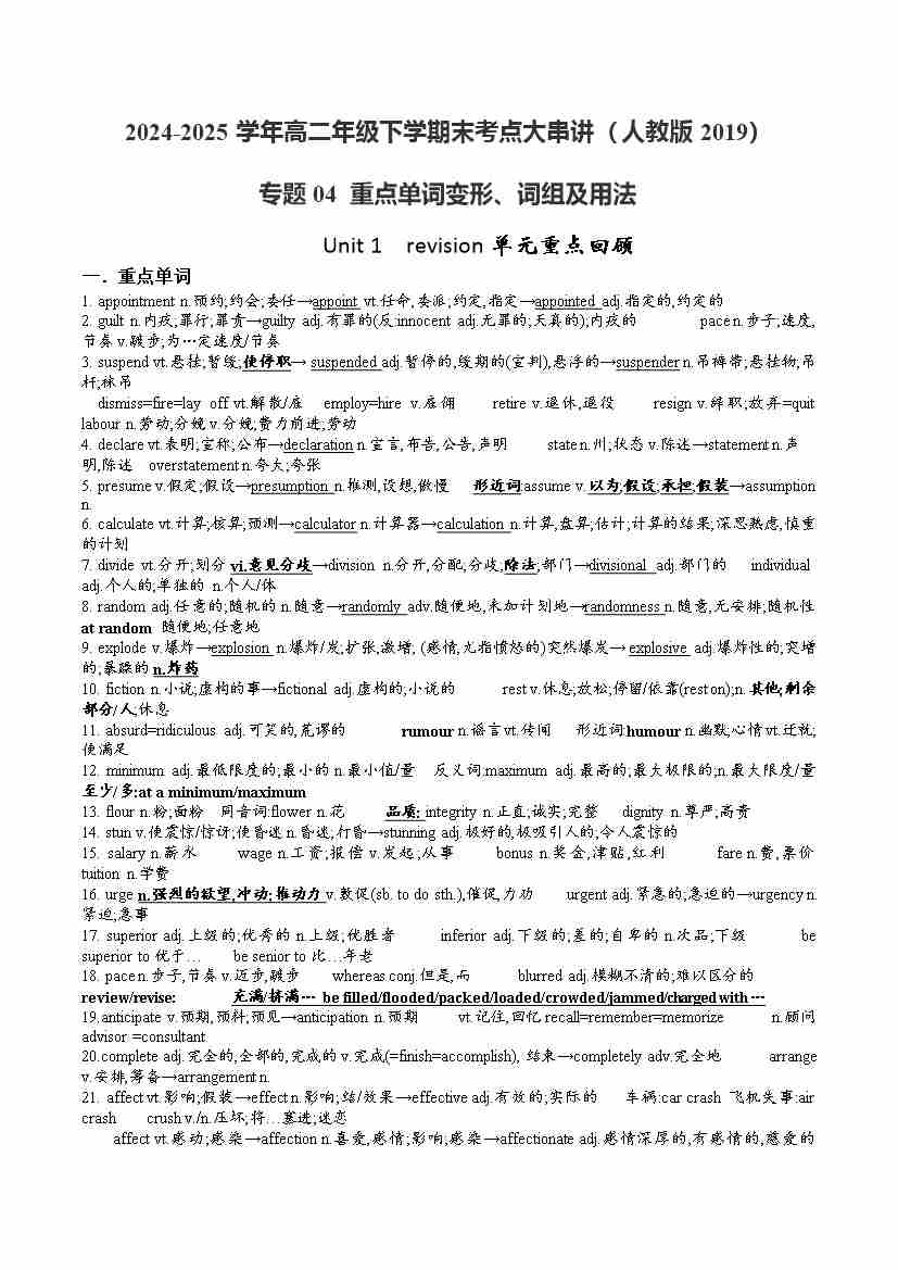 考点清单02 选必二Unit1~Unit 5 (重点单词变形、词组、句型和范文)- (人教版2019)