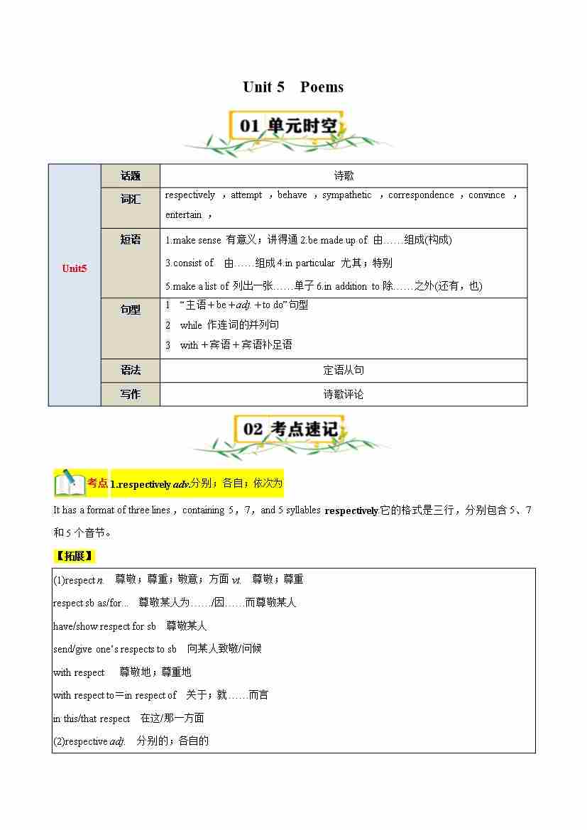 Unit 5 Poems(知识清单)(学生版)