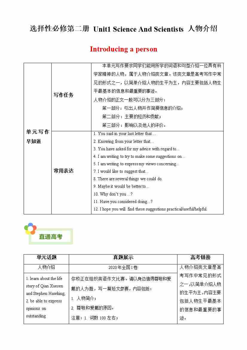 Unit 1 Science and Scientists人物介绍(单元同步写作讲义)(教师版)