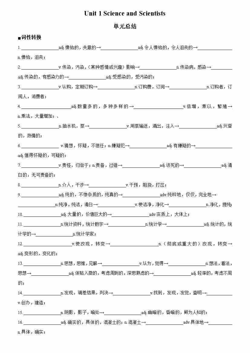 Unit 1 Science and Scientists词性转换、重点短语、同步习题(含答案)-(人教版选择性必修第二册)