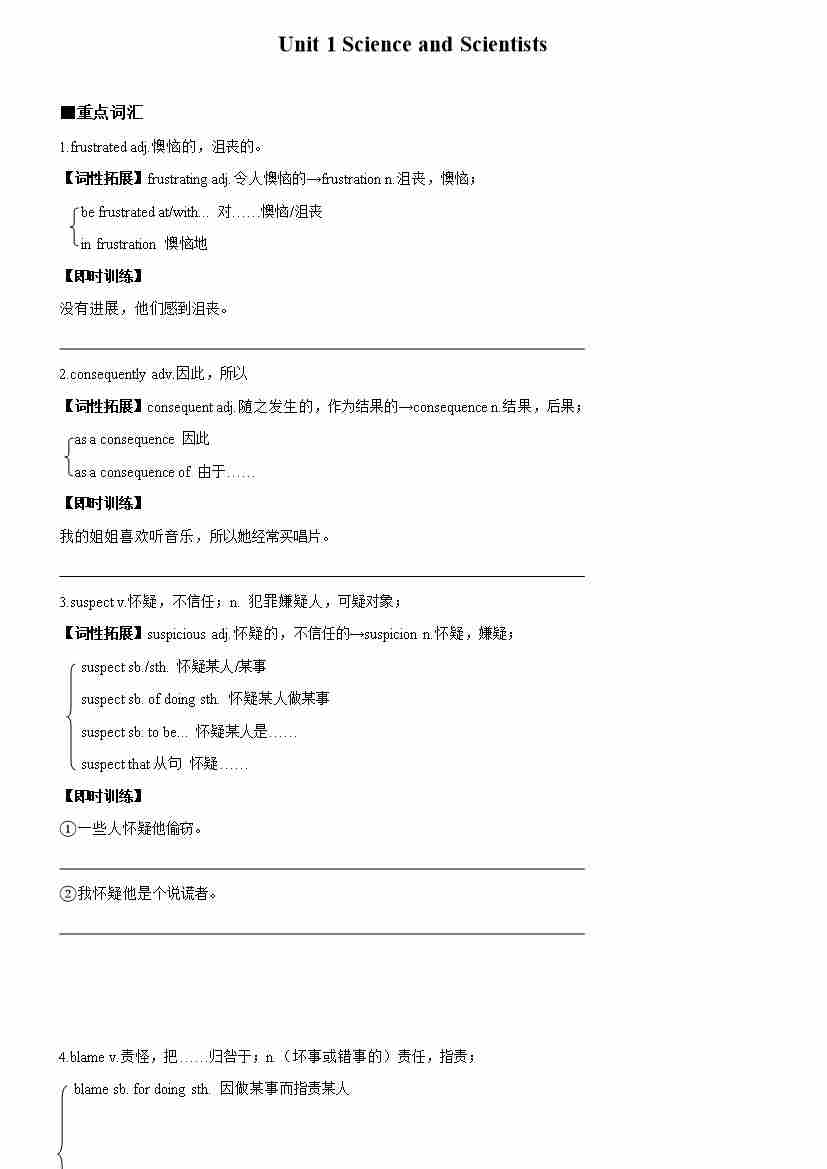 Unit 1 Science and Scientists重难点知识清单(含答案,打印可用)-(人教版选择性必修第二册)