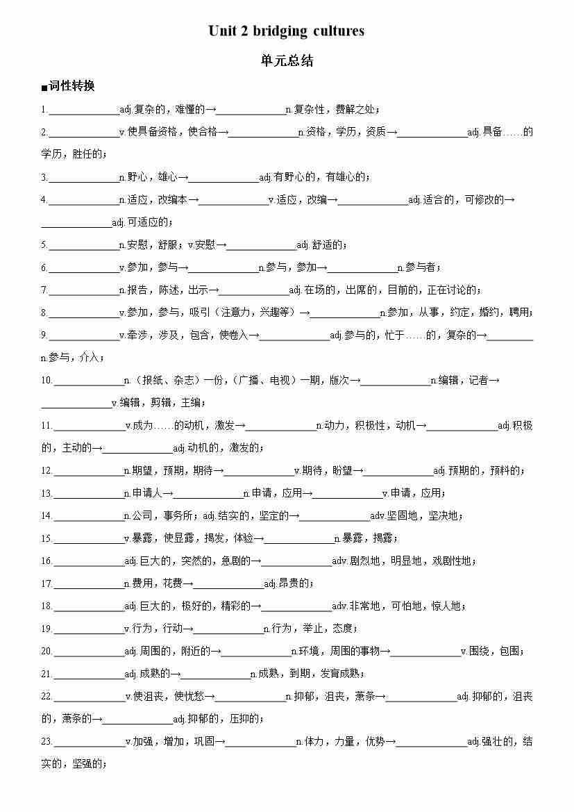 Unit 2 bridging cultures词性转换、重点短语、同步习题(含答案)-(人教版选择性必修第二册)