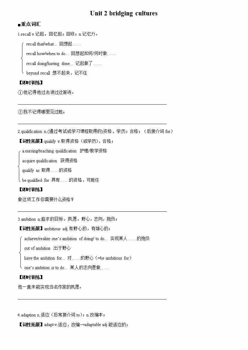 Unit 2 bridging cultures重难点知识清单(含答案,打印可用)-(人教版选择性必修第二册)