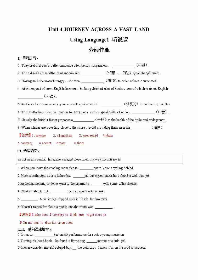 Unit 4 JOURNEY ACROSS A VAST LAND Using Language1 听说课(分层作业)(解析版)