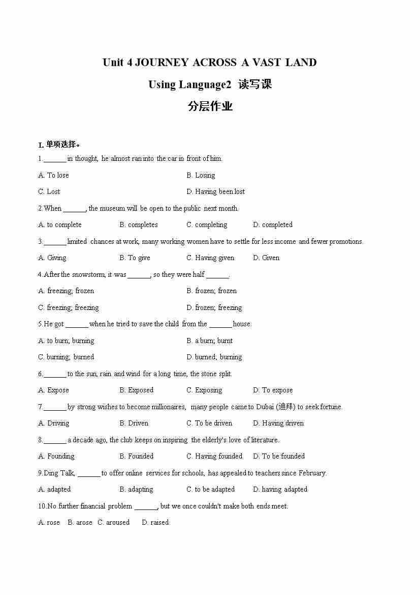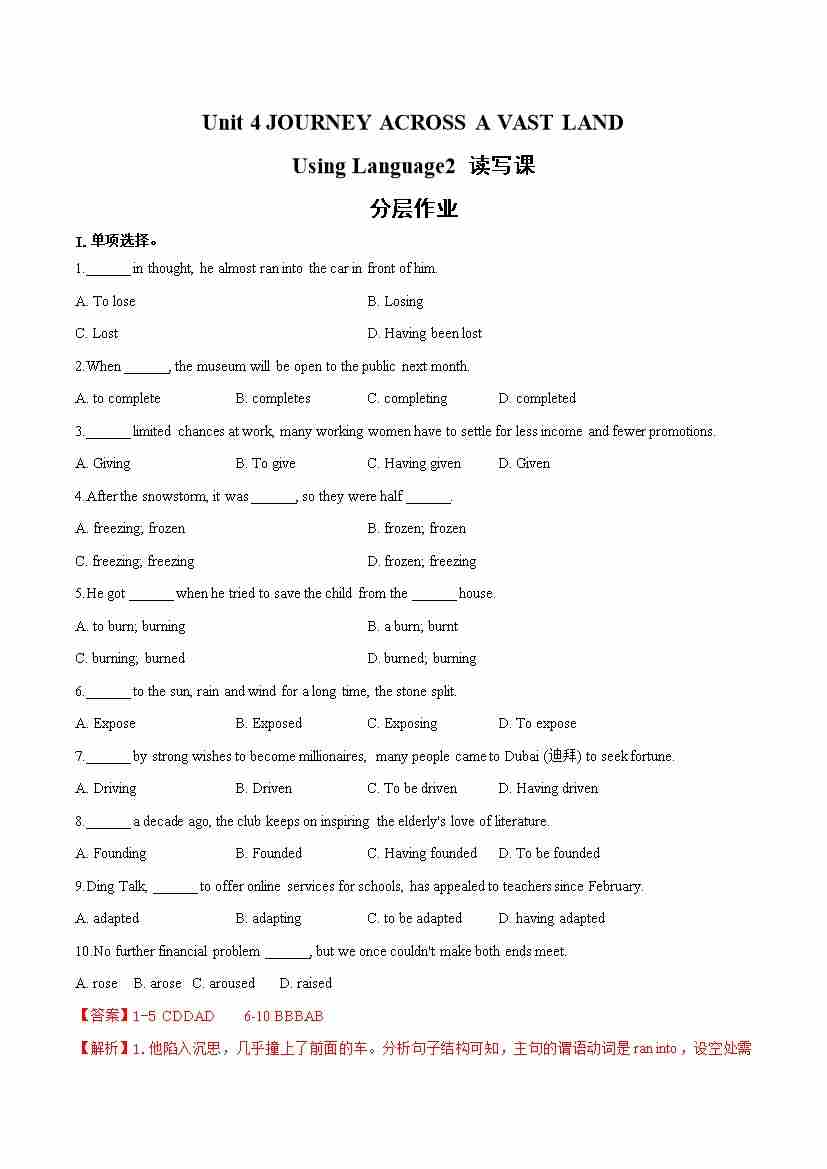 Unit 4 JOURNEY ACROSS A VAST LAND Using Language2 读写课(分层作业)(解析版)