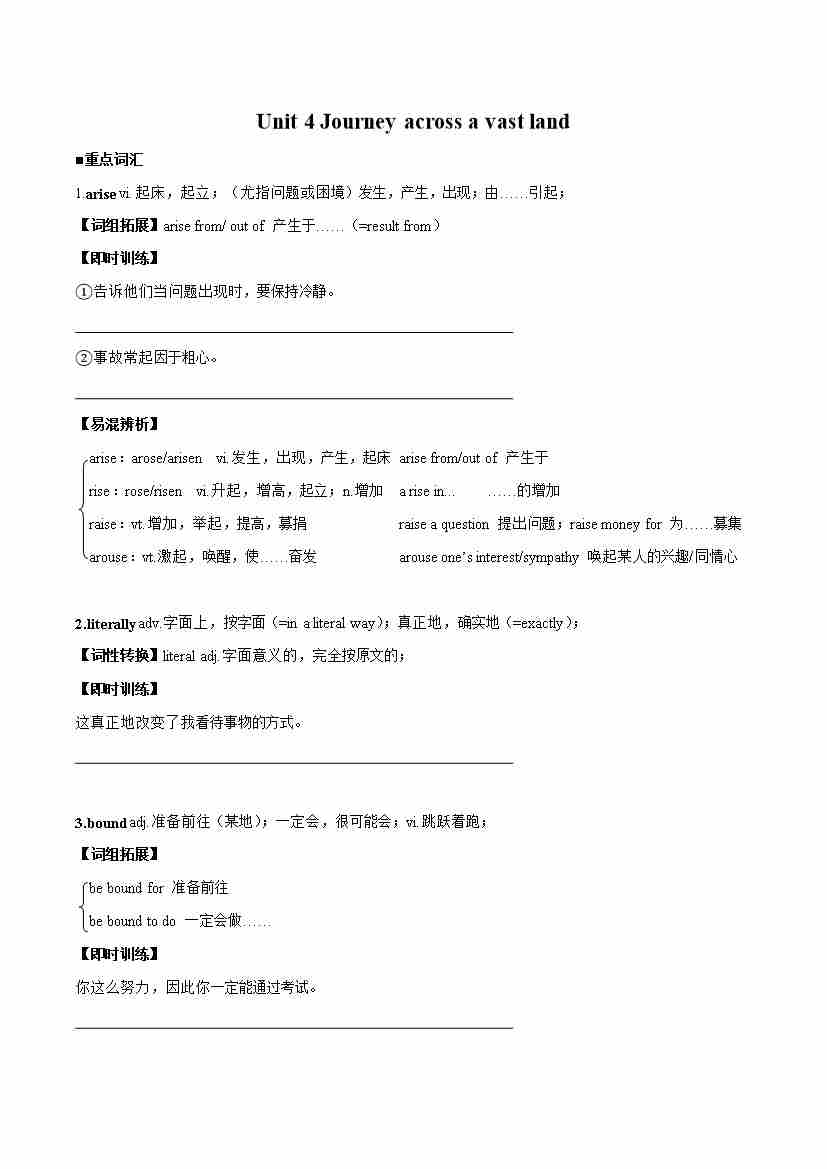 Unit 4 Journey across a vast land重难点知识清单(含答案,打印可用)-(人教版选择性必修第二册)