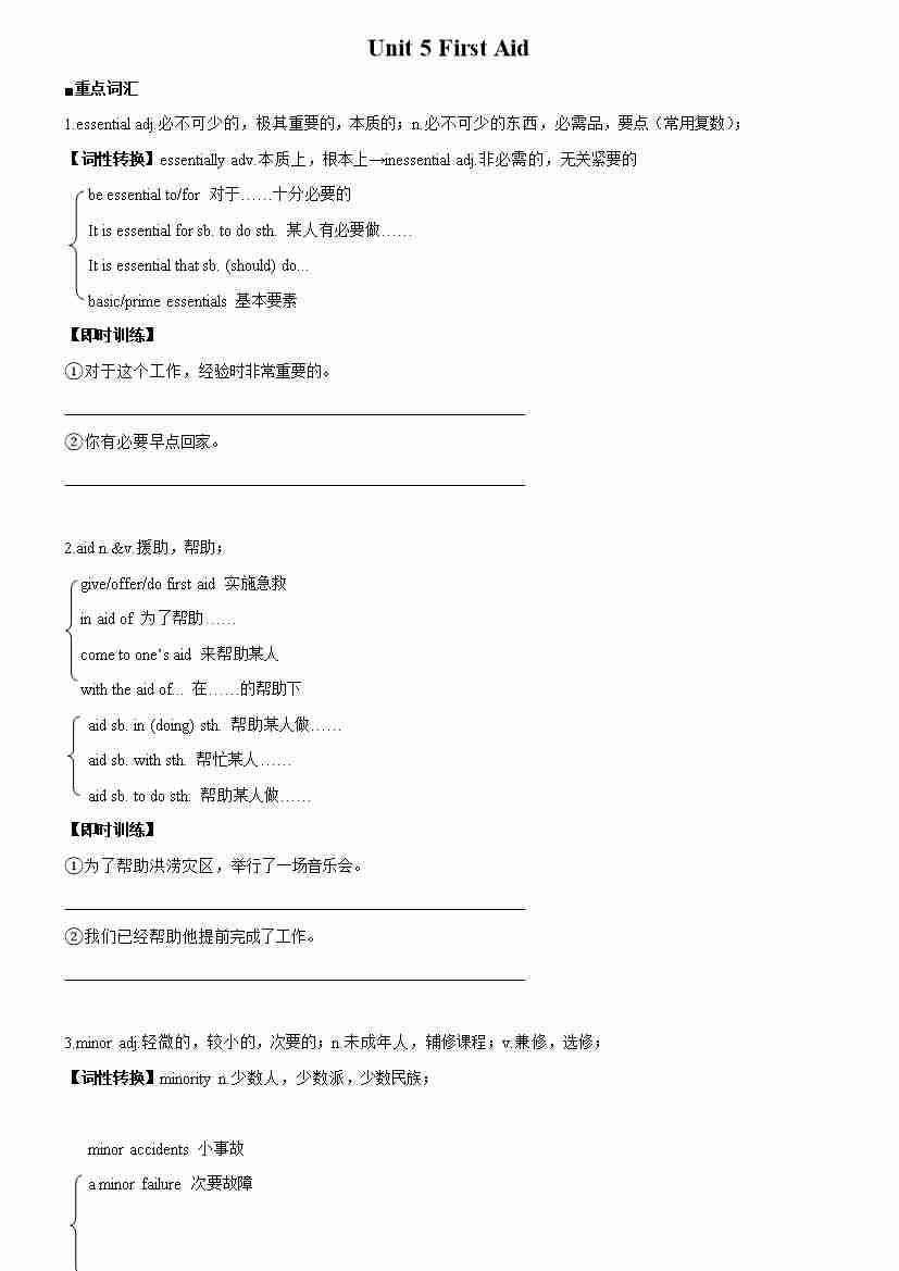 Unit 5 First Aid 重难点知识清单(含答案,打印可用)-(人教版选择性必修第二册)