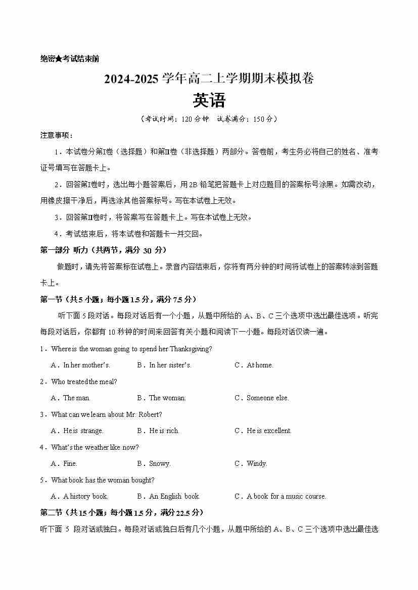 高二期末考试人教版 (听力)