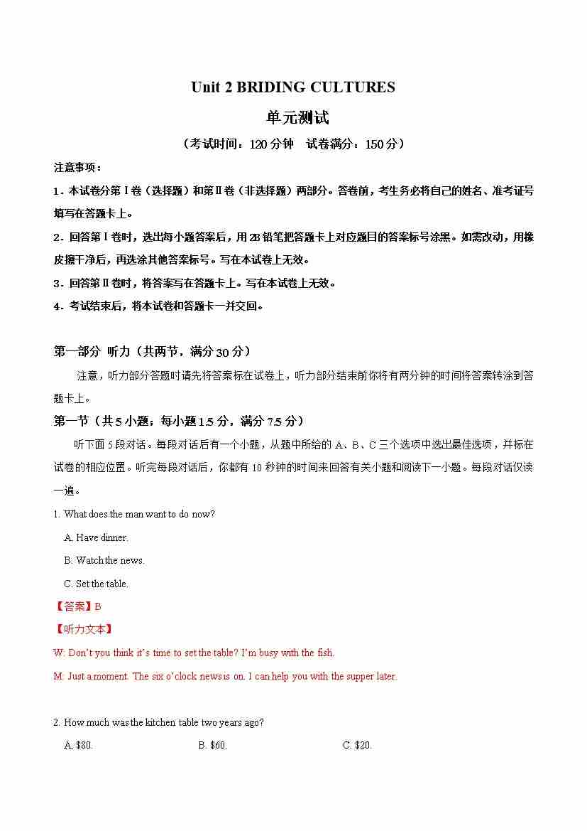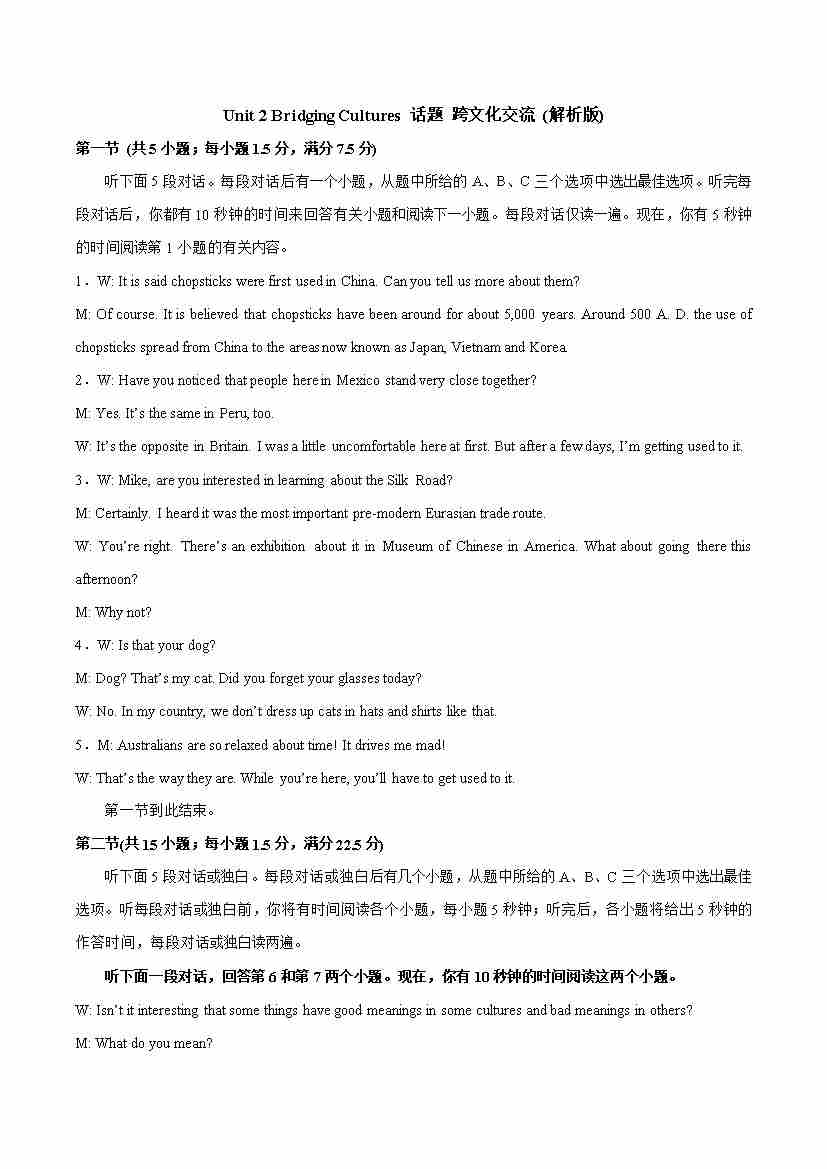 Unit 2 BRIDGING CULTURES(单元测试)(详解版)-