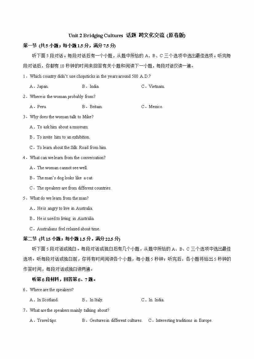 Unit 2 Bridging Cultures 话题 跨文化交流 (教师版)