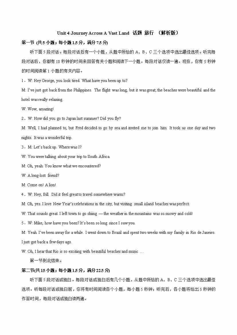 Unit 4 Journey Across A Vast Land 话题 旅行 (教师版)
