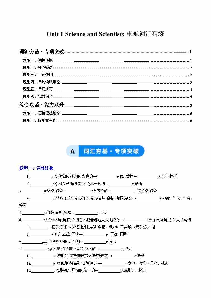 Unit 1 Science and Scientists(重难词汇精练)(学生版)