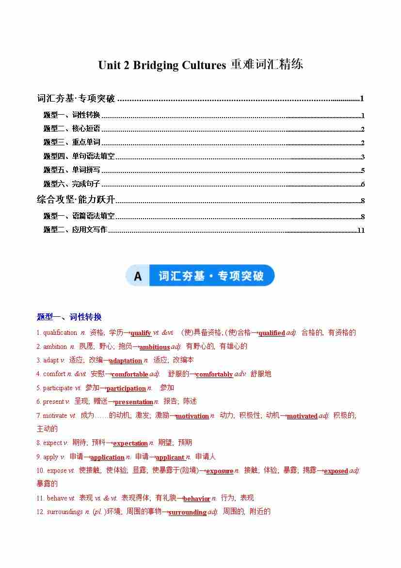 Unit 2 Bridging Cultures(重难词汇精练)(学生版)
