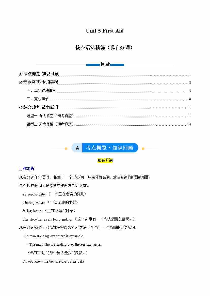 Unit 5 First Aid 现在分词(单元核心语法精练)(学生版)