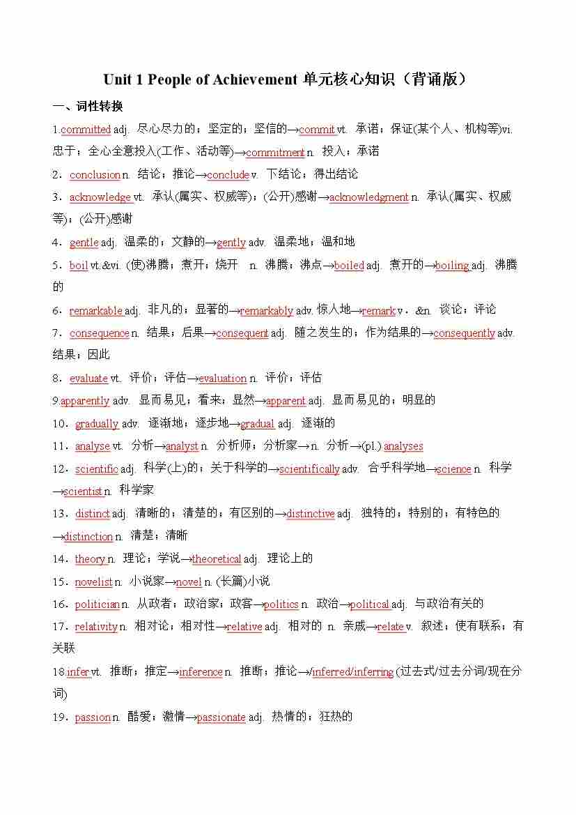 Unit 1 People of Achievement(单元核心知识)(背诵版)