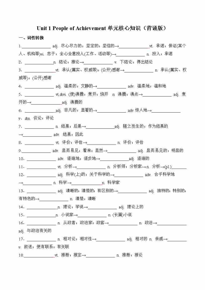 Unit 1 People of Achievement(单元核心知识)(默写版)