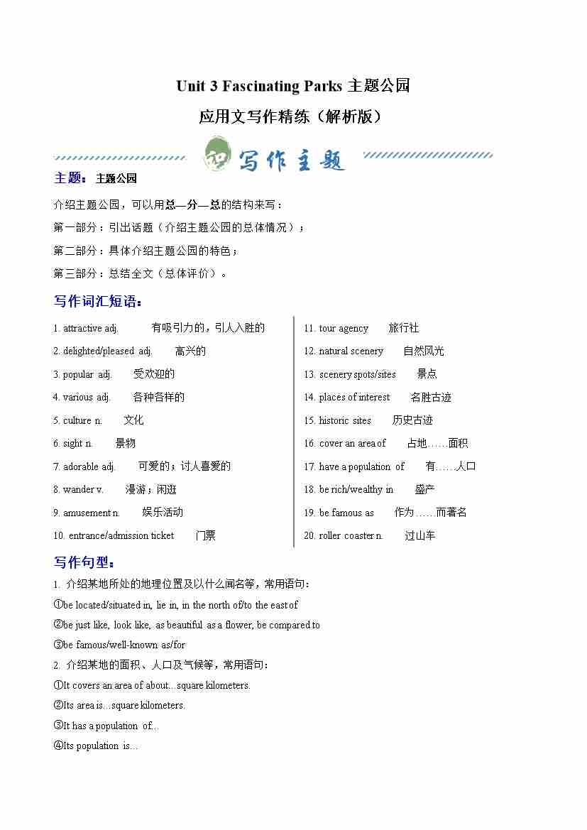 Unit 3 Fascinating Parks主题公园(单元应用文写作精练)(教师版)