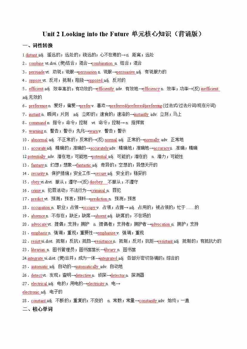 Unit 2 Looking into the Future(单元核心知识)(背诵版)