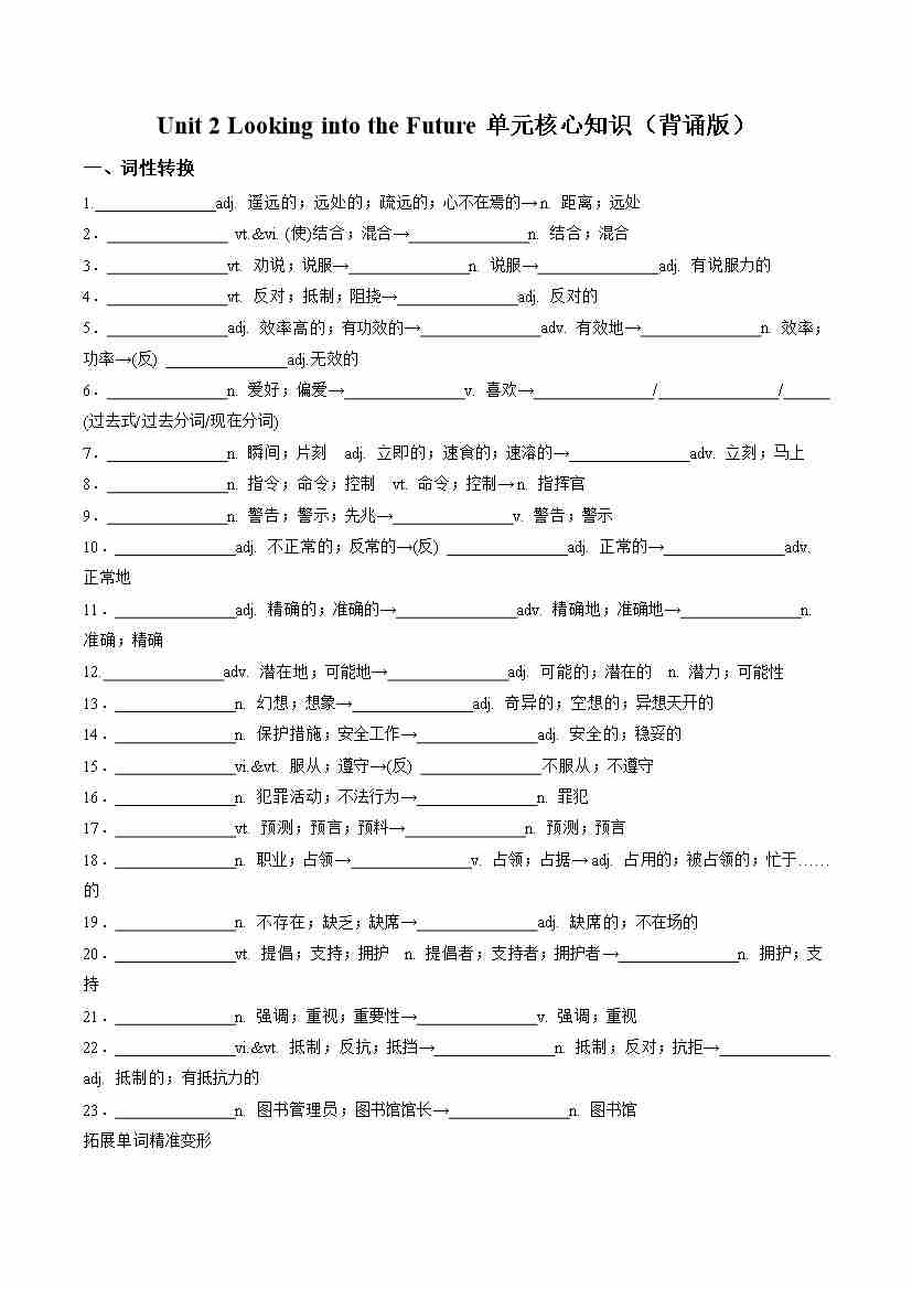 Unit 2 Looking into the Future(单元核心知识)(默写版)