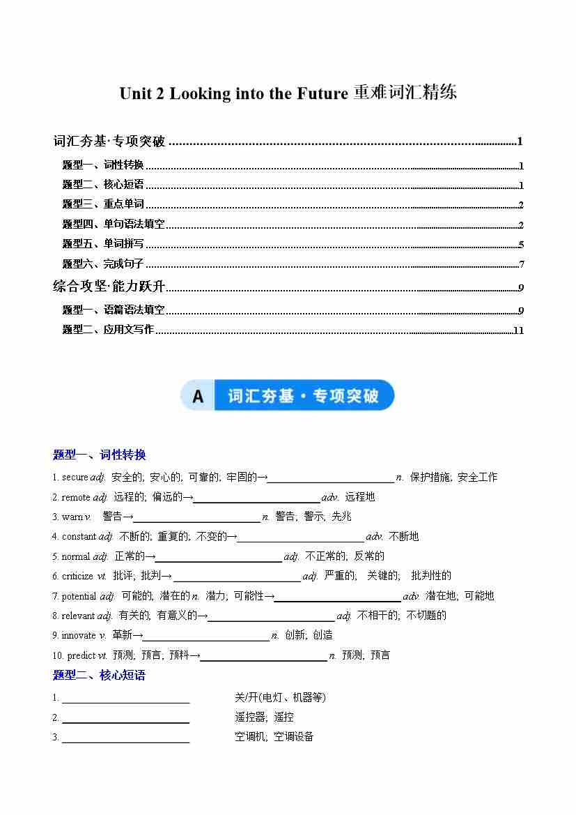 Unit 2 Looking into the Future(重难词汇精练)(学生版)