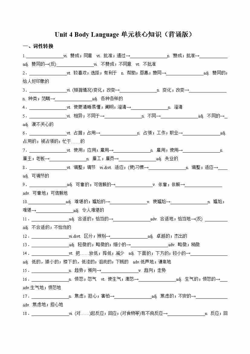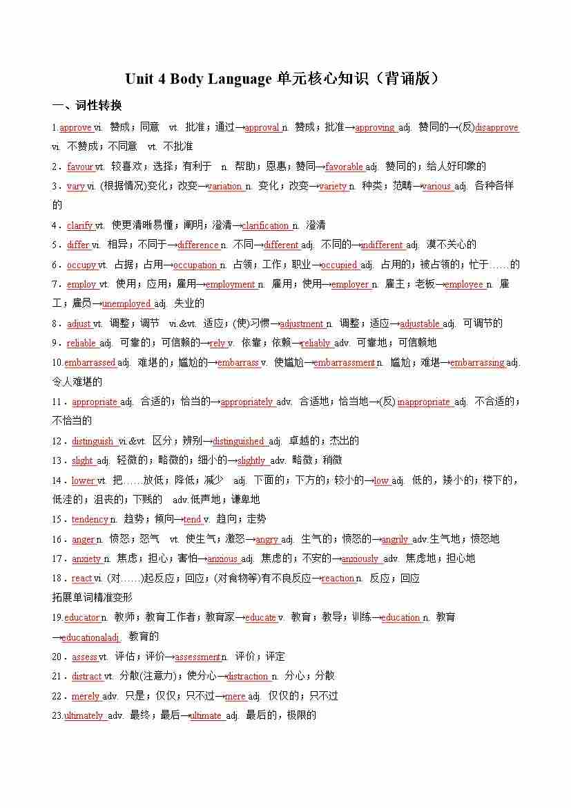 Unit 4 Body Language(单元核心知识)(背诵版)