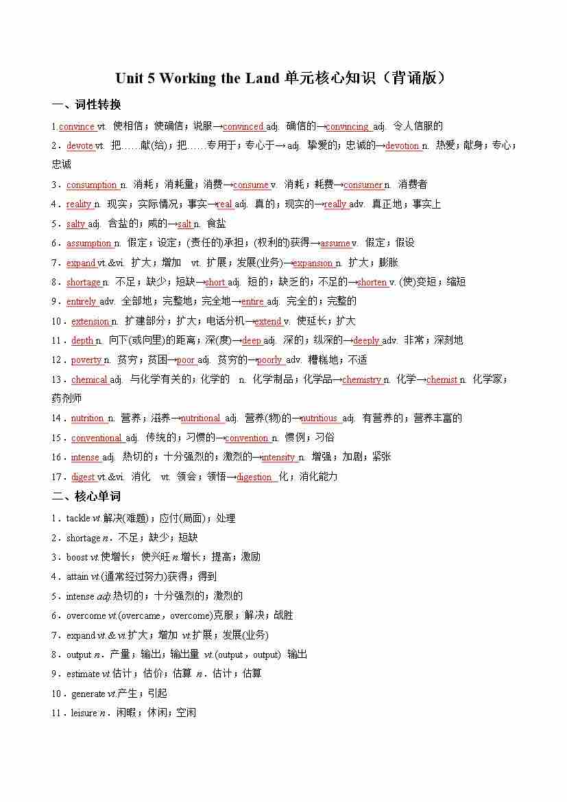 Unit 5 Working the Land(单元核心知识)(背诵版)