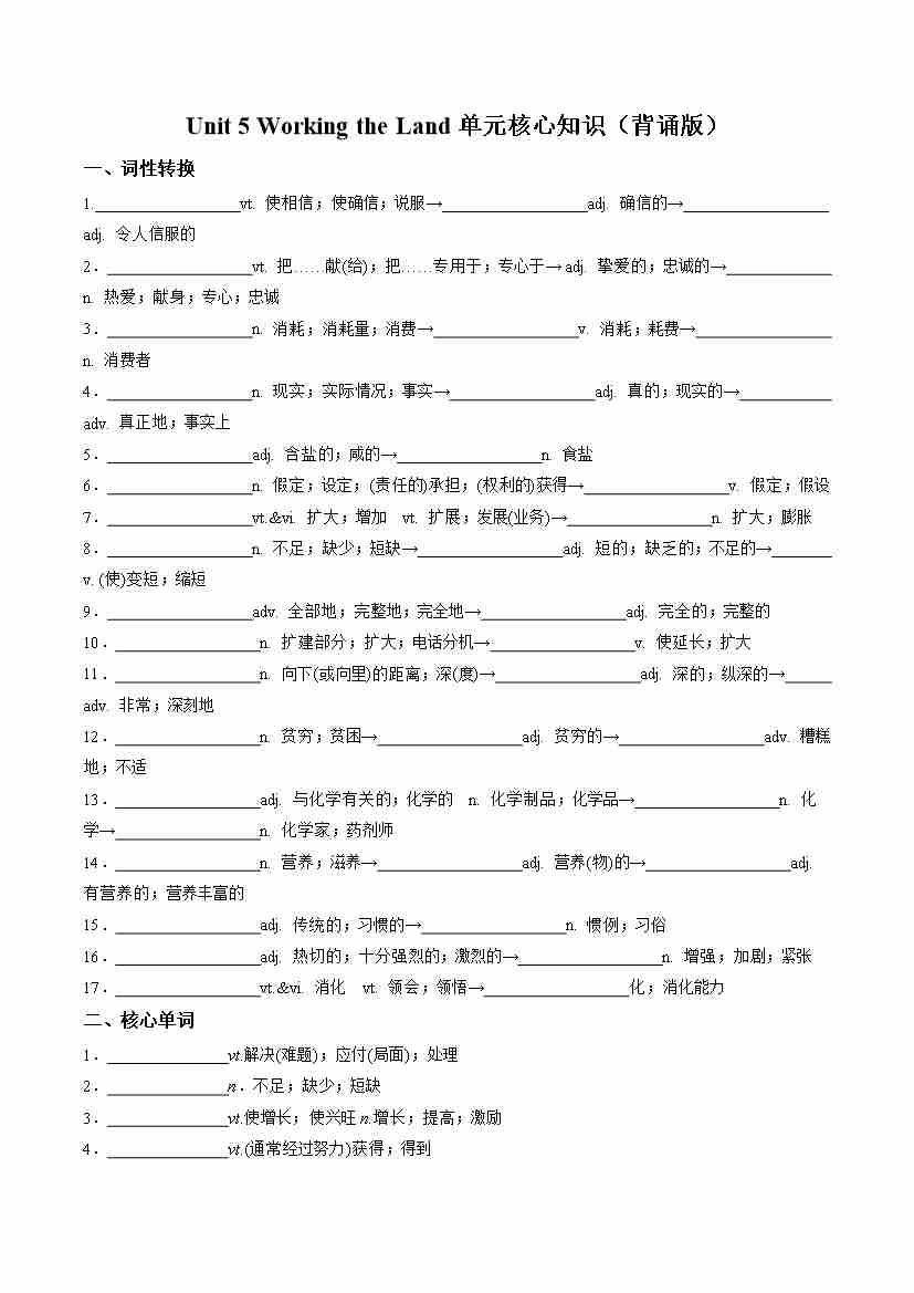 Unit 5 Working the Land(单元核心知识)(默写版)
