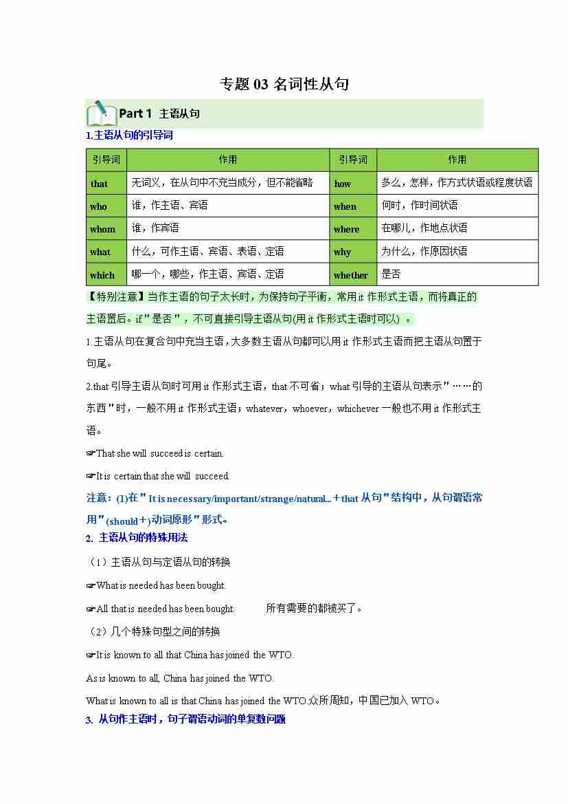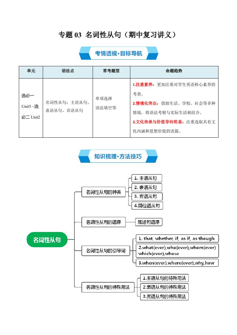 专题03 名词性从句 (期中复习讲义)(学生版)