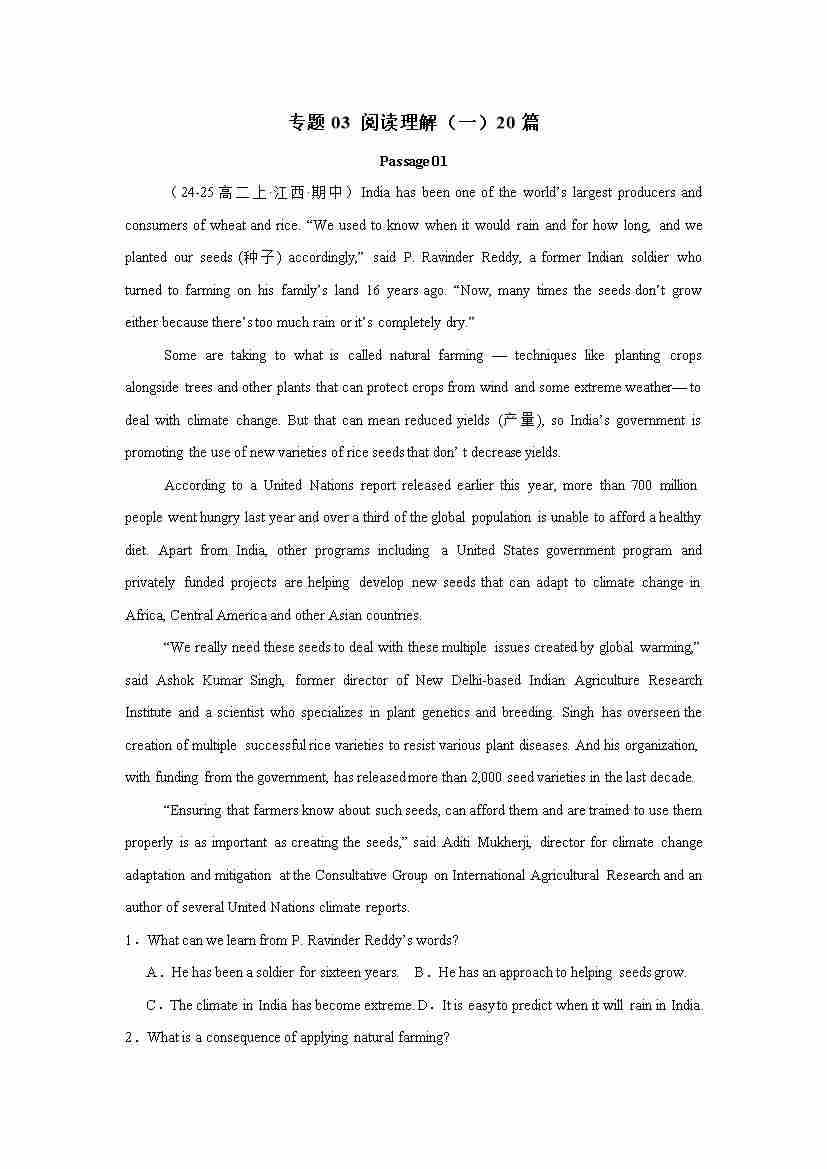 专题03 阅读理解(一)20篇(考题猜想)(学生版)