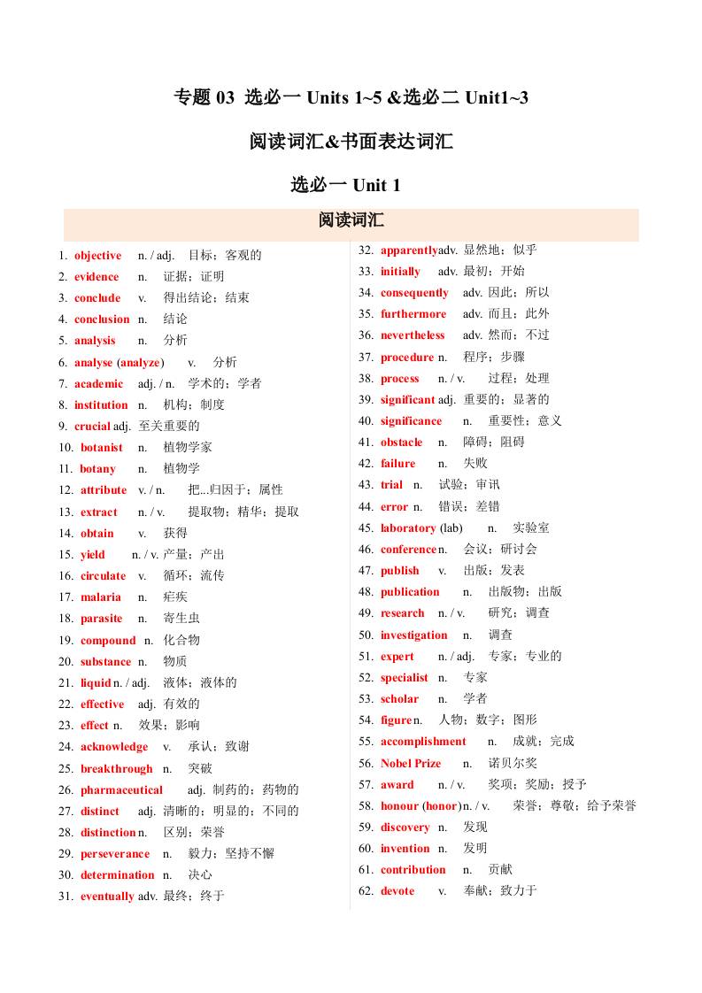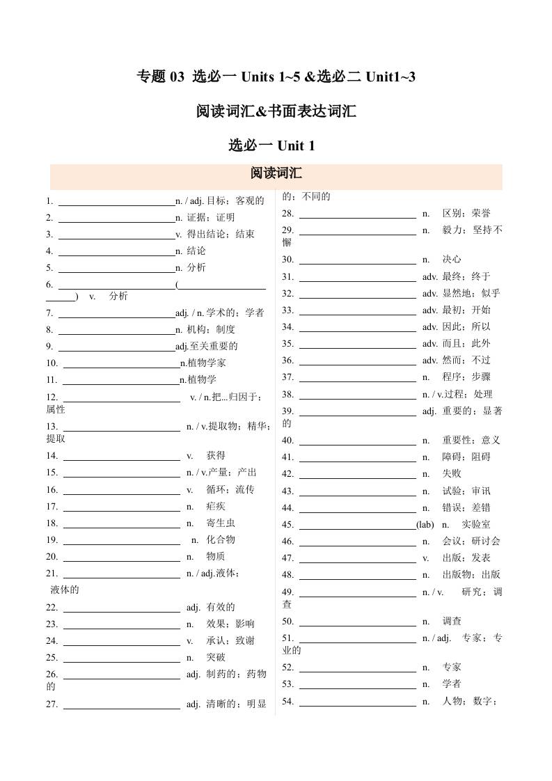 专题03选必一~选必二Unit3阅读&书面表达词汇归纳(期中知识清单)(背诵版)33