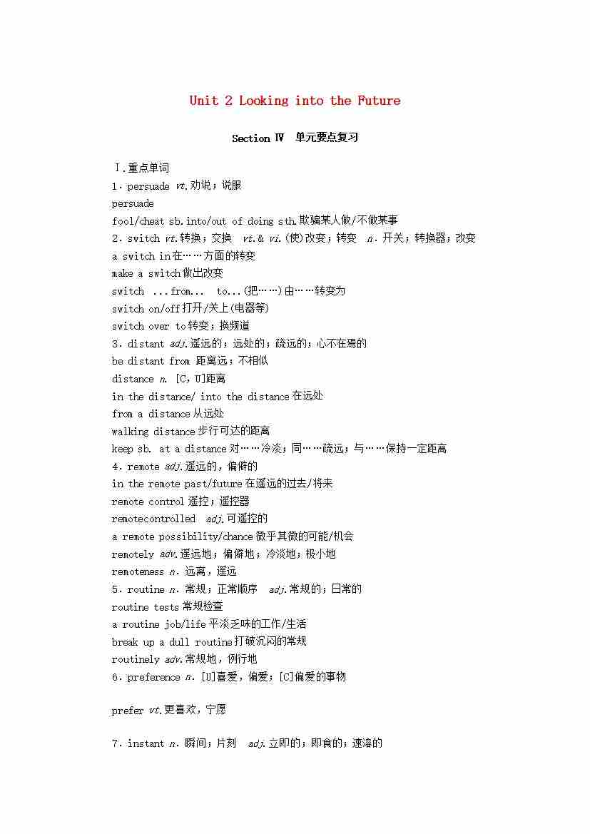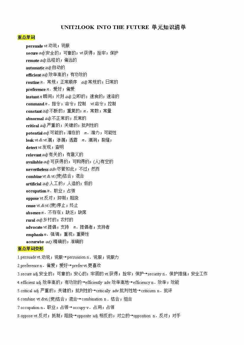 UNIT2 LOOK INTO THE FUTURE(单元知识清单)-(人教版2019选择性必修第一册)
